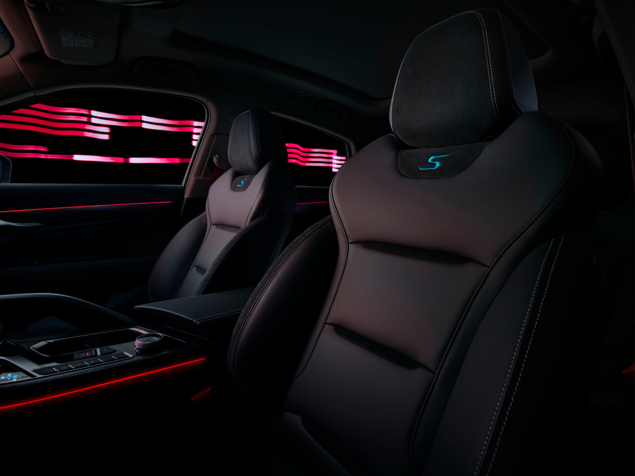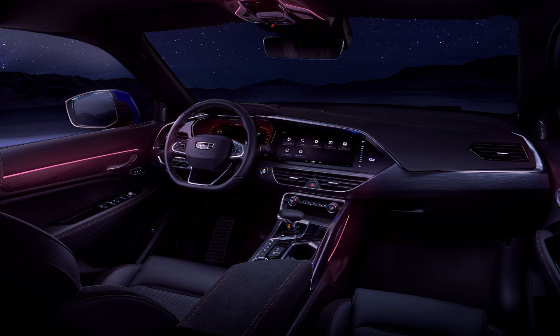 - Атмосферная подсветка интерьера с возможностью изменения цвета в дверях и на центральной консоли