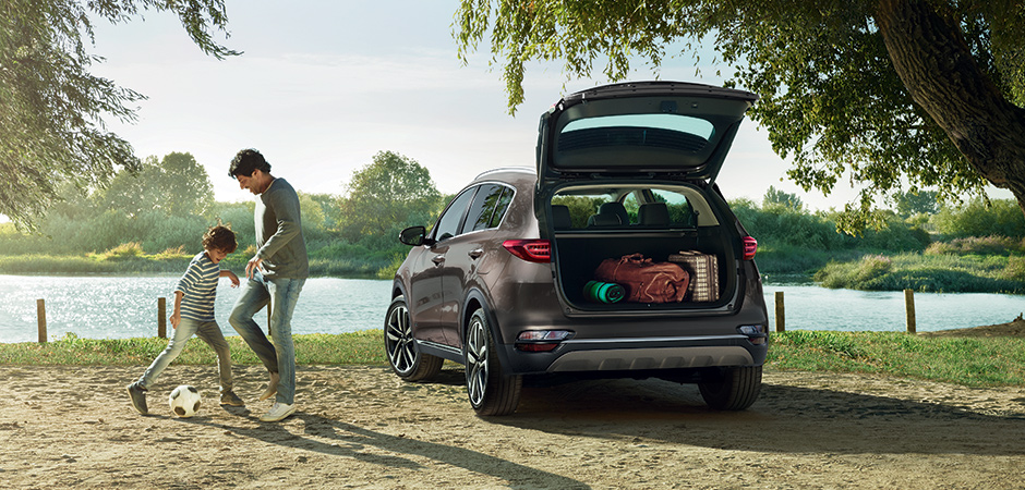 - Чёрная эмблема "SPORTAGE", расположенная по центру дверцы багажного отсека