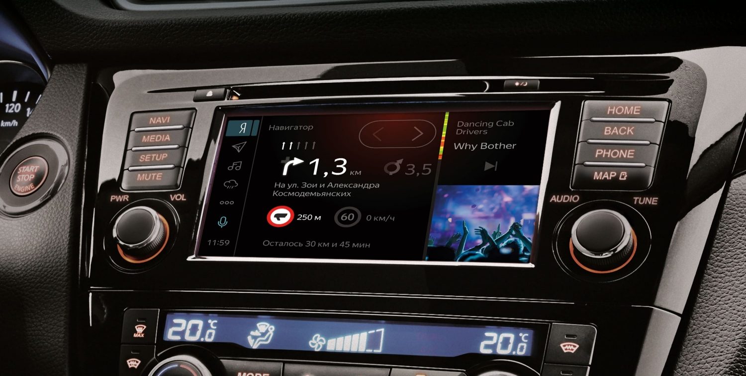 Многофункциональная мультимедийная система NissanConnect 2.0 с AM/FM/ CD/MP3 проигрывателем и навигационной системой